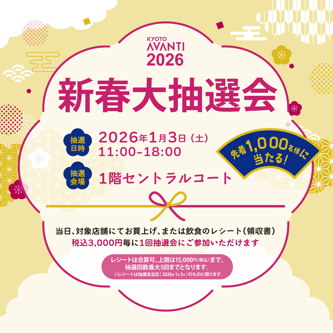 『先着1,000名様に当たる新春大抽選会』のご案内当日、対象店舗にてお買い上げ、または飲食のレシート....