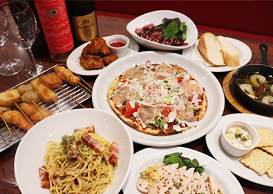 串揚げ・アヒージョ・ピザなど多種多様な料理がリーズナブルに楽しめます。白と赤を貴重とした店内は明るく、昼飲みや女子会など様々なシーンでご利用いただけます。